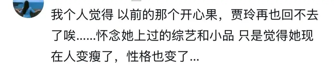 有人说还是怀念以前胖胖的贾玲,瘦了之后的贾玲性格变了,再也不是从前的样子了,就连雷佳音都说,瘦了之后的贾玲感觉不认识了,像是重新处了一个人。