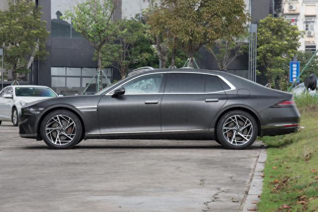 捷尼赛思G90的侧面轮廓显着比较大气,舒展,给人的体量感还是比较大的,尾部还提供小鸭尾,尾灯设计的比较狭窄,尾灯中间还提供英文字母标识,排气采用双出式设计,车身尺寸方面,新车的长宽高分别为5275/1930/1490毫米,轴距达到3180毫米,长轴距版的长宽高分别为5465 1930 1490毫米,轴距为3370毫米。