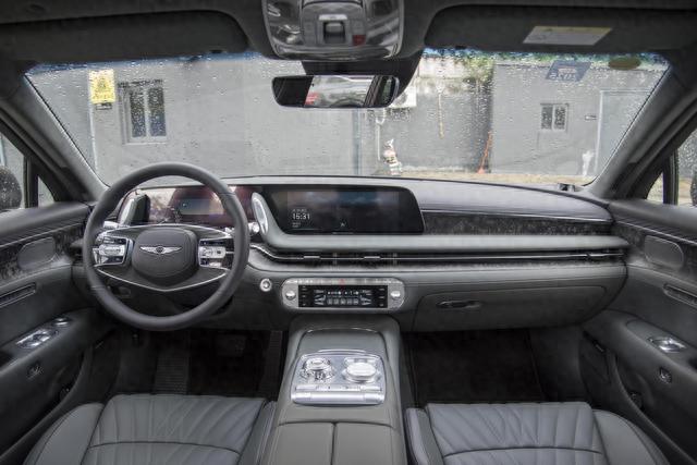 捷尼赛思G90的侧面设计,还是很有层次感的,连体式液晶屏幕也是必不可少,符合这个时代的潮流,方向盘采用两幅式设计,商务气息还是比较足的,换挡机构采用旋钮式,座椅经过纹路处理后,精致感还是比较不错的,整体设计,符合一个豪华轿车该有的水准。